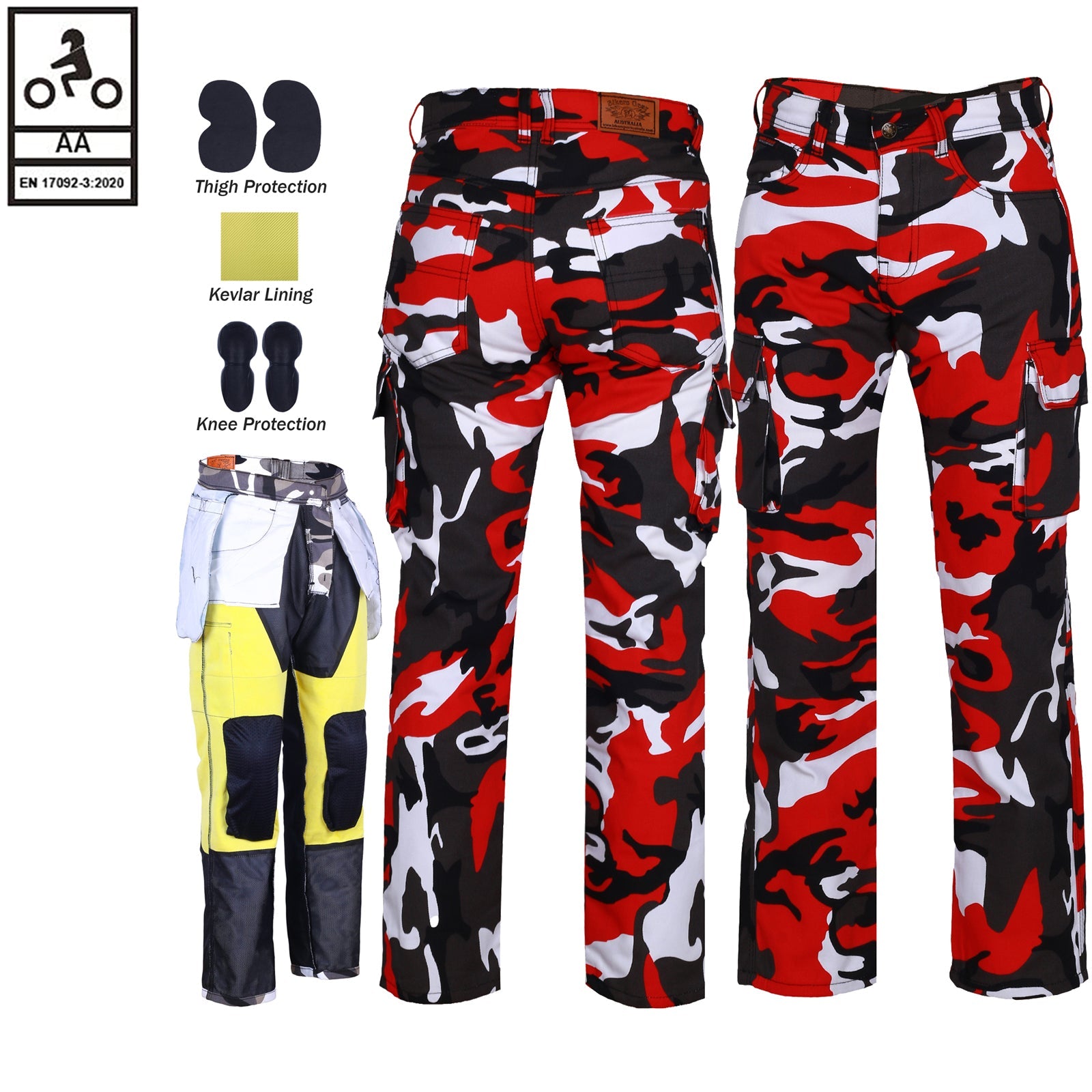 Robin Mens Motorcycle Lined with Kevlar Cargo Pants Red/Camo